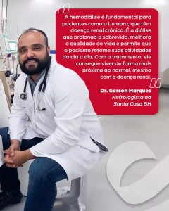 A destinação correta de recursos públicos é decisiva para transformar vidas e fortalecer o atendimento de saúde em Minas Gerais. Um exemplo disso é a história de Lumara Regina de Queiroz Gonçalves (na foto abaixo), paciente em hemodiálise há mais de 15 anos na Santa Casa de Belo Horizonte.